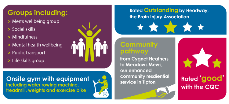 Cygnet Heathers is located in Great Bridge near Birmingham, which offers easy access to shops, local libraries, community centres and parks. A perfect blend of real life settings further supporting rapid recovery.