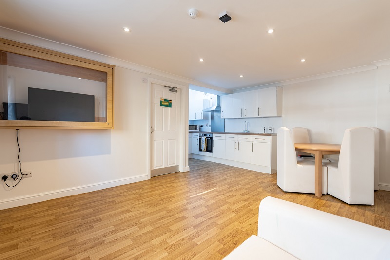 Longfield House consists of 5 different living areas, including a 5-bed home and 4 single occupancy flats. The 5-bed home has communal living spaces with a lounge, dining room, and kitchen, and each person has their own en-suite facilities. There are also 4 individual flats, one in the main house and three in the coach house. These provide opportunities for individuals to be more independent and live in their own space. The flats can also be used to support those who require extra support or find it difficult to share space with others. Externally, there is a courtyard and a garden with plenty of space for individuals to have BBQs, garden parties, or simply sit and enjoy the outside.
